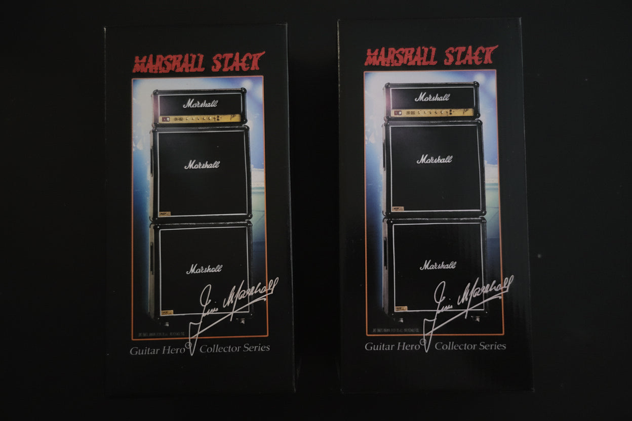 Knucklebonz Rock Iconz 2005 Marshall Stack Guitar Hero Collector Series. Set of 2 new Marshall Amps. New never displayed Inspected and Photographed certificate #1573 and #2701 of 3000. Only 3000 pieces created and sold worldwide SOLD OUT. All Rock Iconz statues are officially licensed, limited edition collectibles. Each piece is hand-crafted. This is a fine-arts process where each statue is hand-cast, painted and numbered. These statues are created in 1/9 scale, making the average height of each approximately 8.5” tall and each statue comes with a certificate of authenticity on the base of the statue.