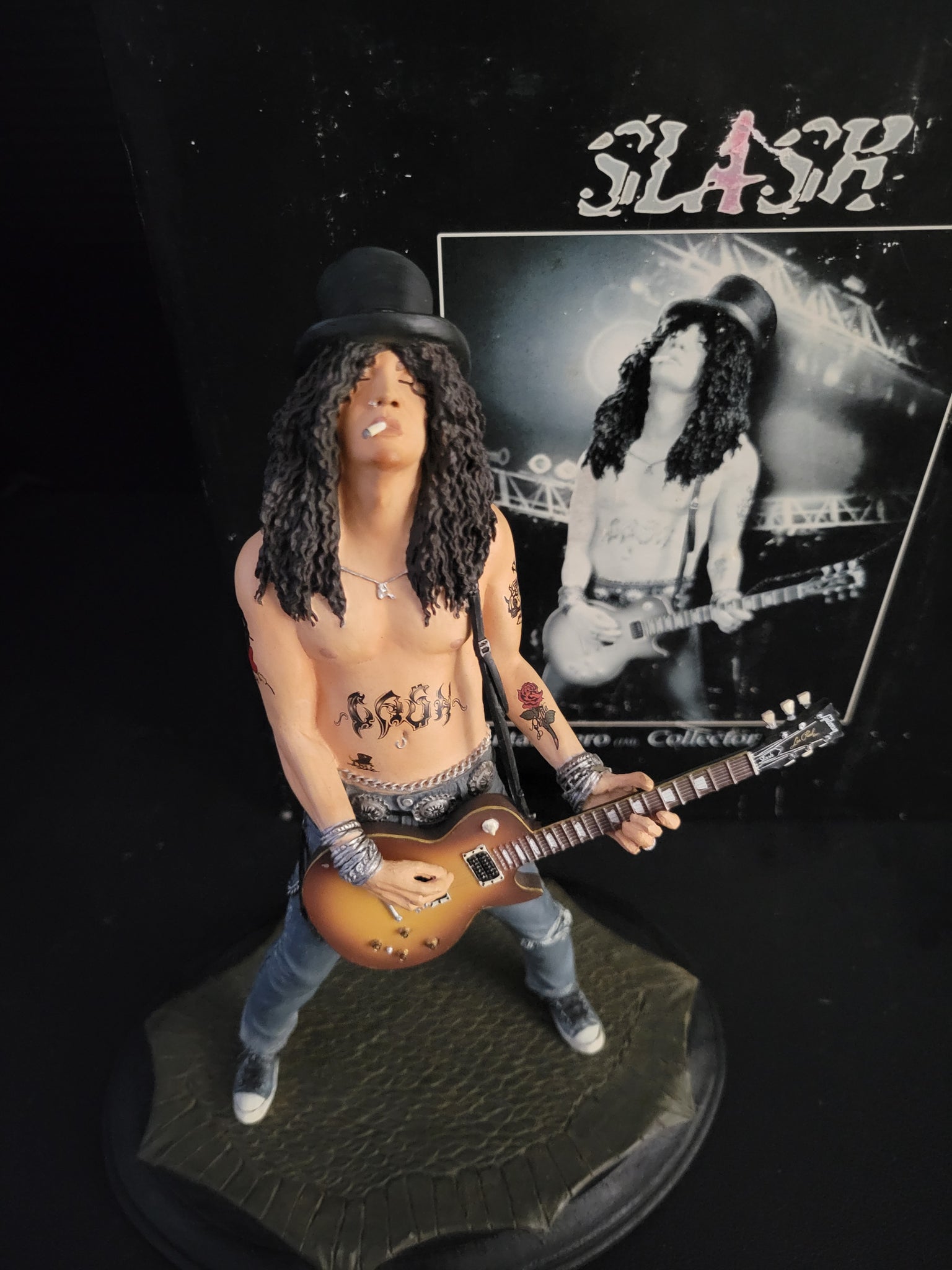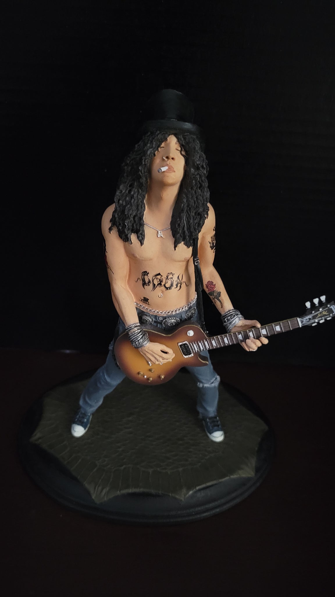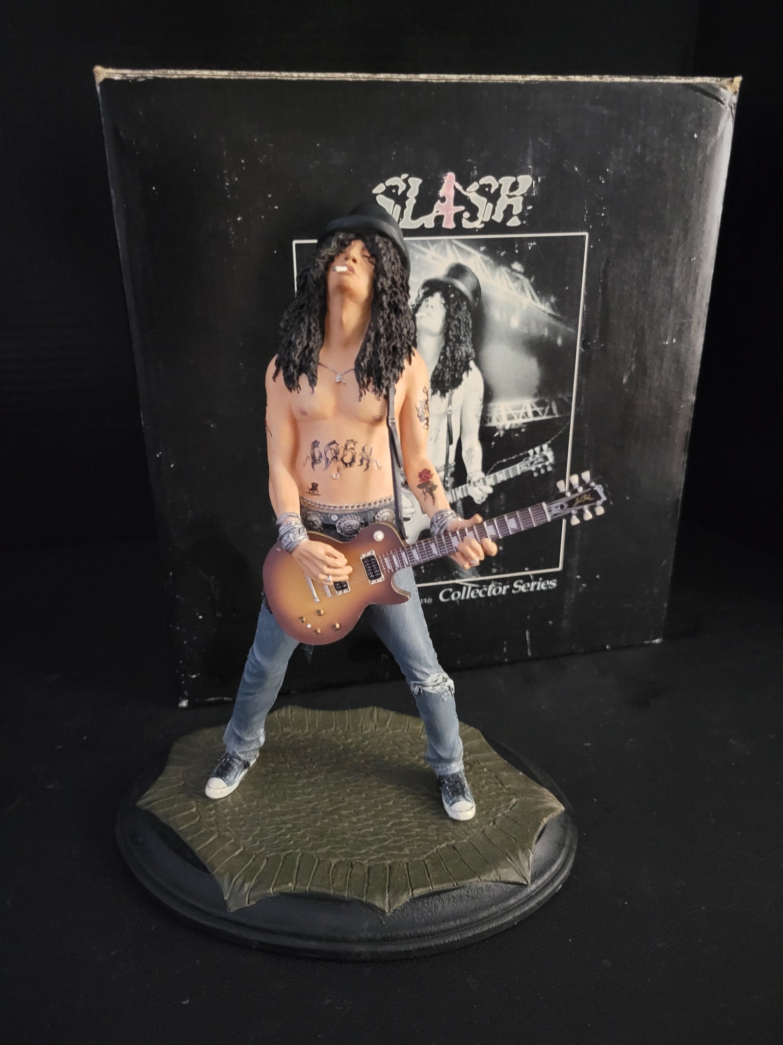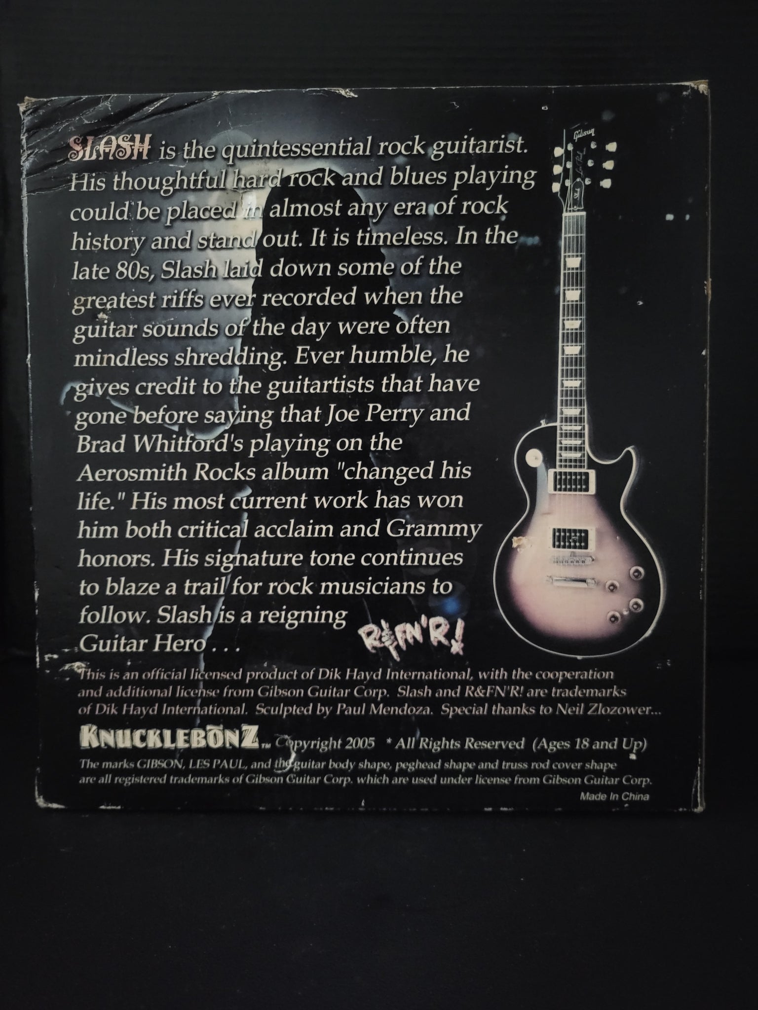 Knucklebonz Rock Iconz 2005 Slash Guns & Roses New Never displayed Inspected and Photographed certificate # 1343 of 3000 . A rare classic and impossible to find, one of the first ever produced!..Note: box has wear and color faded but statue perfect and price reflects this lower price. Only 3000 pieces created and sold worldwide SOLD OUT. All Rock Iconz statues are officially licensed, limited edition collectibles. Each piece is hand-crafted. This is a fine-arts process where each statue is hand-cast, painted and numbered. These statues are created in 1/9 scale, making the average height of each approximately 8.5” tall and each statue comes with a certificate of authenticity on the base of the statue.