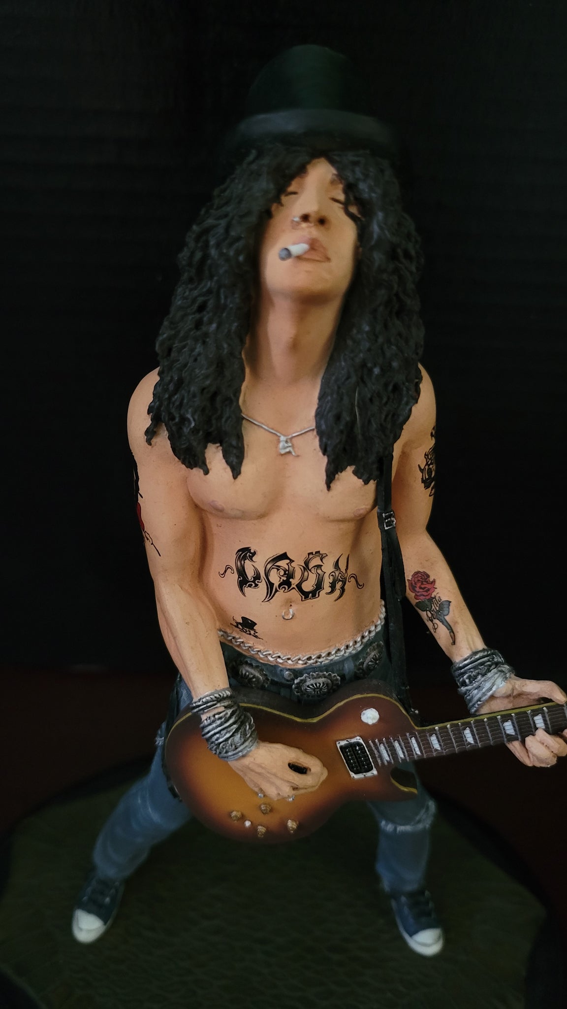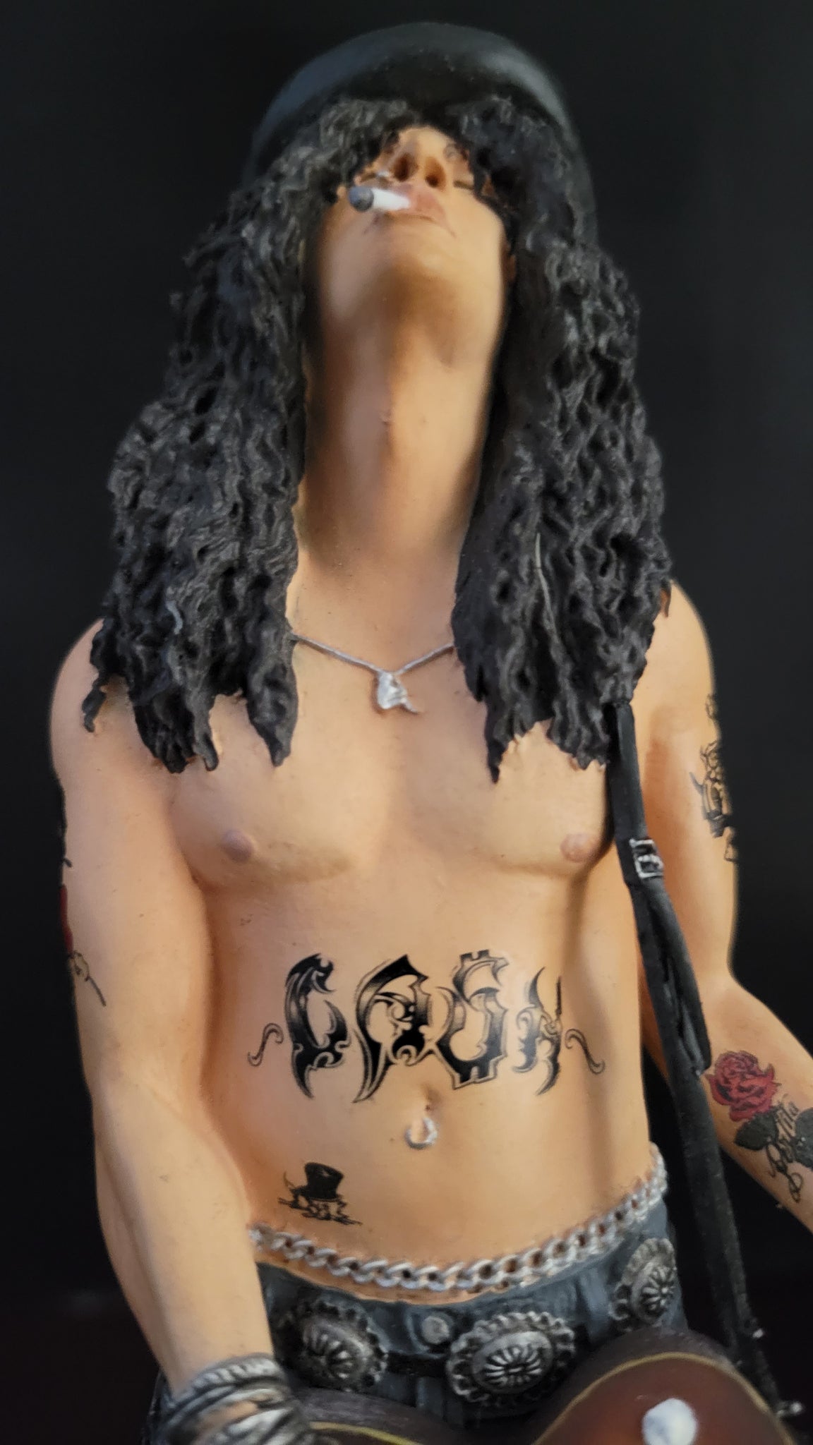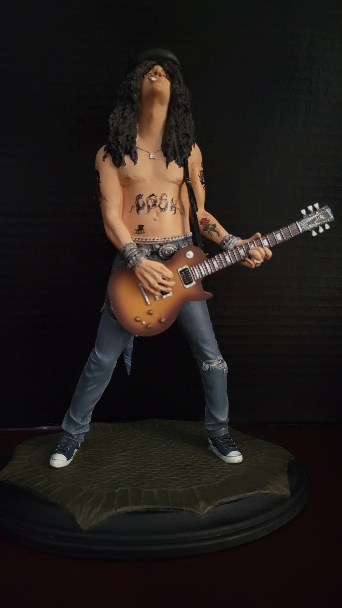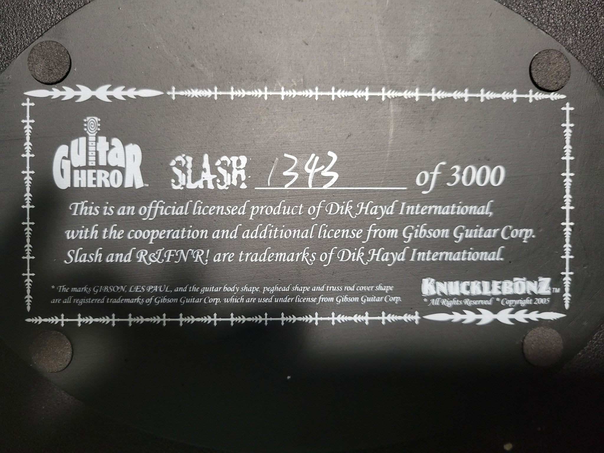 Knucklebonz Rock Iconz 2005 Slash Guns & Roses New Never displayed Inspected and Photographed certificate # 1343 of 3000 . A rare classic and impossible to find, one of the first ever produced!..Note: box has wear and color faded but statue perfect and price reflects this lower price. Only 3000 pieces created and sold worldwide SOLD OUT. All Rock Iconz statues are officially licensed, limited edition collectibles. Each piece is hand-crafted. This is a fine-arts process where each statue is hand-cast, painted and numbered. These statues are created in 1/9 scale, making the average height of each approximately 8.5” tall and each statue comes with a certificate of authenticity on the base of the statue.