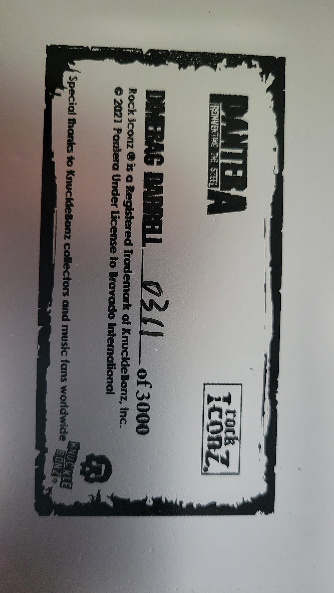 Knucklebonz Rock Iconz  2021 Dimebag Darrelll - Pantera. New Never displayed Inspected and Photographed certificate #311 of 3000... Only  pieces created and sold worldwide and SOLD OUT. All Rock Iconz statues are officially licensed, limited edition collectibles. Each piece is hand-crafted. This is a fine-arts process where each statue is hand-cast, painted and numbered. These statues are created in 1/9 scale, making the average height of each approximately 8.5” tall and each statue comes with a certificate of authenticity on the base of the statue.