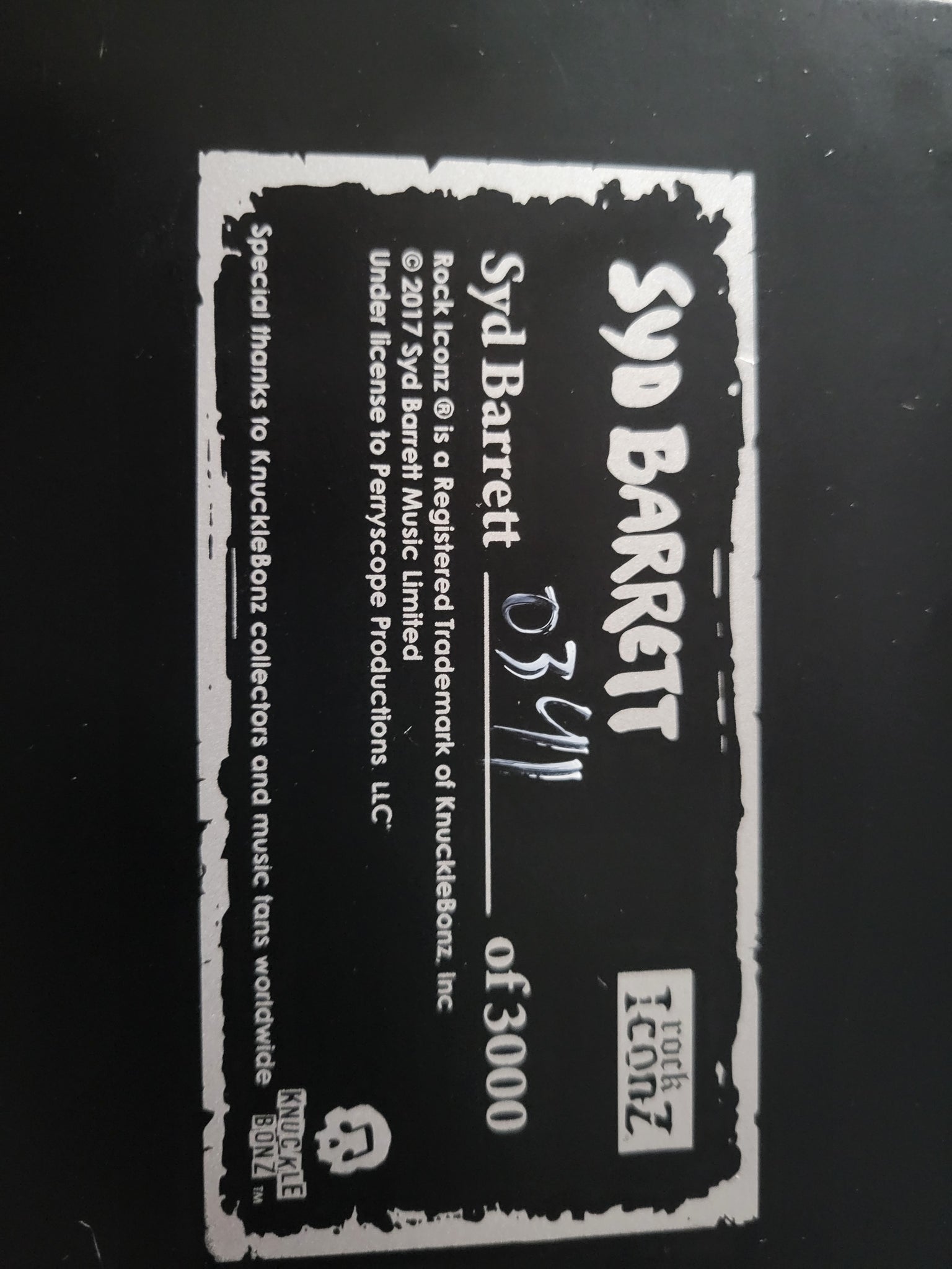 Knucklebonz Rock Iconz 2017 Pink Floyd Syd Barrett Inspected and Photographed certificate #391 of 3000. Only 3000 pieces created and sold worldwide and SOLD OUT.. All Rock Iconz statues are officially licensed, limited edition collectibles. Each piece is hand-crafted. This is a fine-arts process where each statue is hand-cast, painted and numbered. These statues are created in 1/9 scale, making the average height of each approximately 8.5” tall and each statue comes with a certificate of authenticity on the base of the statue.