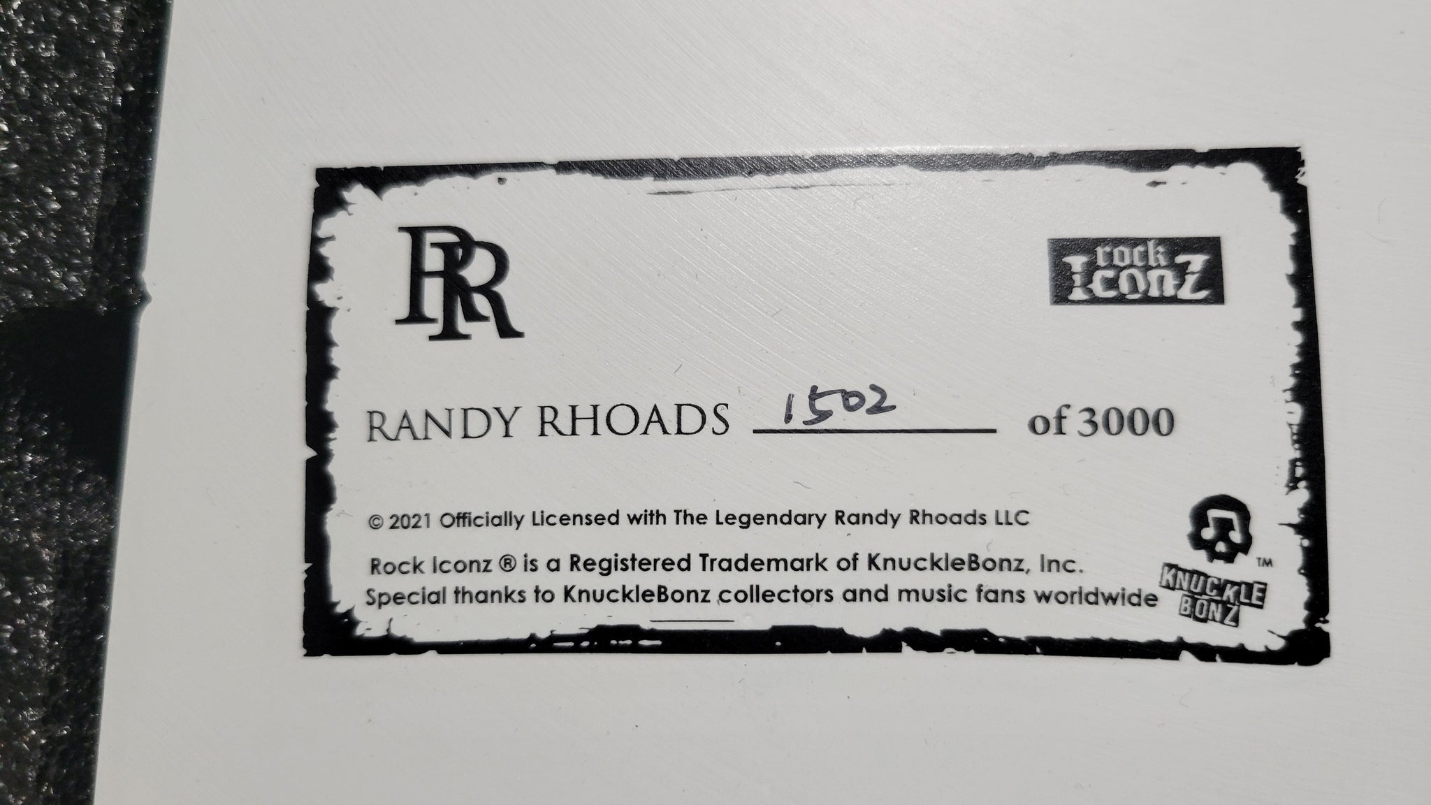 Knucklebonz Rock Iconz 2021 Randy Rhoads. New Never displayed Inspected and Photographed certificate #1502 of 3000 sold out. Only 3000 pieces created and sold worldwide .All Rock Iconz statues are officially licensed, limited edition collectibles. Each piece is hand-crafted. This is a fine-arts process where each statue is hand-cast, painted and numbered. These statues are created in 1/9 scale, making the average height of each approximately 8.5” tall and each statue comes with a certificate of authenticity on the base of the statue.
